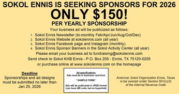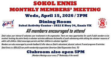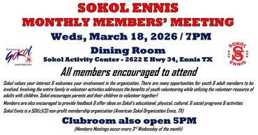 As a Sokol Ennis Youth or Adult Member, participants have the opportunity to volunteer at many events throughout the year: competitions, fund-raisers, exhibitions, social, educational and cultural events. Various opportunities include but are not limited to set up/take down for special events, administrative work (print tickets, create letters, mail, postage), kitchen crews, chaperones, build props, create costumes, clean gyms, assist in a classes, or organize a social, educational or cultural event. We also encourage our members to provide feedback and offer ideas on programs and activities you would like to see offered.